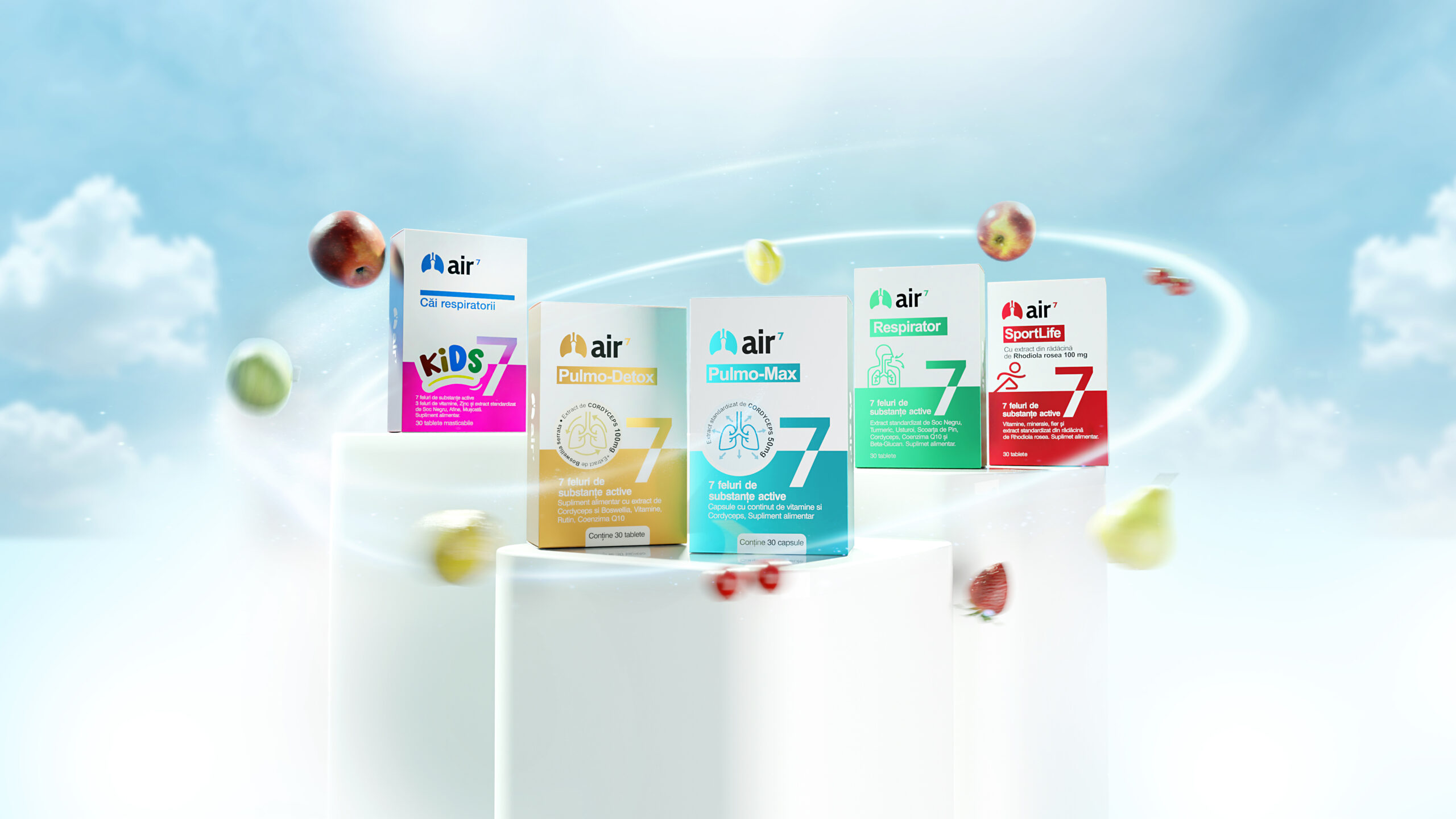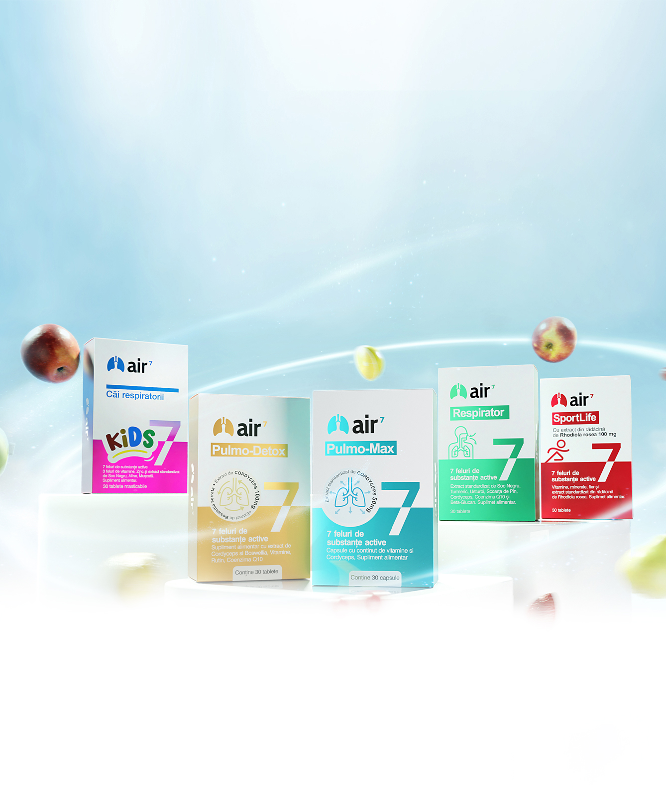 Plamanii sunt expusi la numeroase influente si stimuli externi, aerul viciat, factorii iritanti din aerul inspirat sunt focarele infectiilor cailor respiratorii, motiv pentru care am creat capsula air7 care contine minerale, vitamine și Cordyceps ingerdiente esentiale pentru plamani. Substantele active din compoziţia Air7 au fost concepute pentru a satisface nevoile plamanilor si contribuie la mentinerea functiei pulmonare.